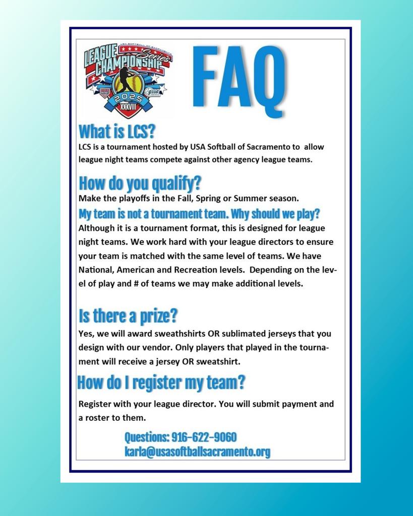 2025 will be the 38th year of the LCS and it is still going strong. This event is open to any slowpitch softball team that won a league program with one of our Member Agencies.
